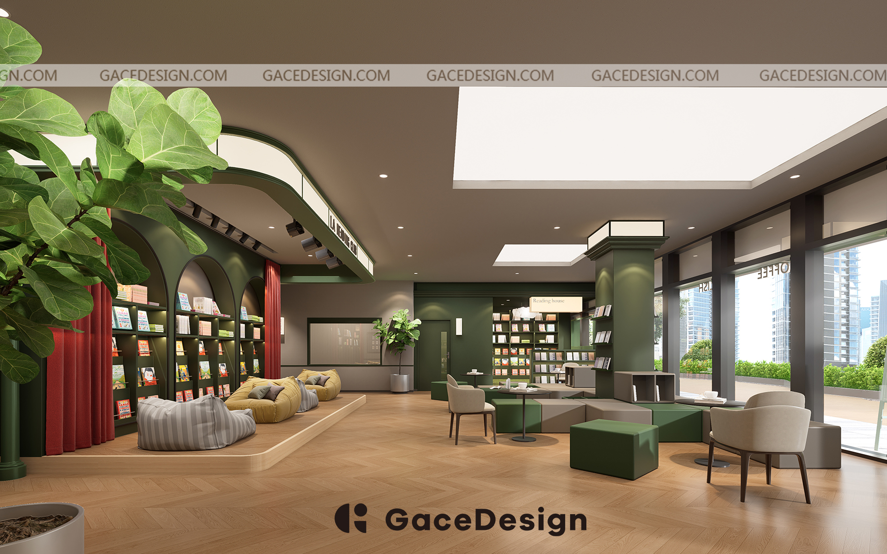 3:動(dòng)靜相結(jié)合,實(shí)現(xiàn)書店,繪本角,舞臺(tái)區(qū),咖啡吧,戲劇區(qū),英語(yǔ)教室等復(fù)合型功能需求。